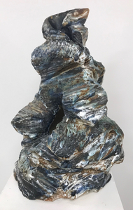 2020Abstract beeld van klei. Glazuren: reactieve slibs en oxydes Het beeld is hooggestookt, d.w.z. dat het evt ook buiten geplaatst kan worden. Kleuren: bruin, geel, wit, beige, zwart.