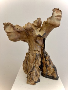 2023Beeld van klei, abstract. Natuur. Boomachtige vorm met onderdelen van gezichten. Het beeld is hooggestookt , d.w.z. het beeld kan buiten en binnen staan. Gestookt in gasoven. Kleuren zwart, roodbruin, wit. Materiaal: Klei, glazuren (shinos), oxydes. Tegen meerprijs kan het beeld op een (bijv stenen) sokkel gemonteerd worden.
