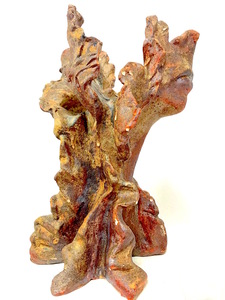 2021Beeld van klei, abstract. Natuur. Boomachtig vorm met onderdelen van gezichten. Het beeld is hooggestookt , d.w.z. het beeld kan buiten en binnen staan. Gestookt in de gasoven. Kleuren zwart, bruin, rood, oranje, groen, geel. Materiaal: Klei, glazuren (shinos), oxydes. Tegen meerprijs kan het beeld op een (bijv stenen) sokkel gemonteerd worden.